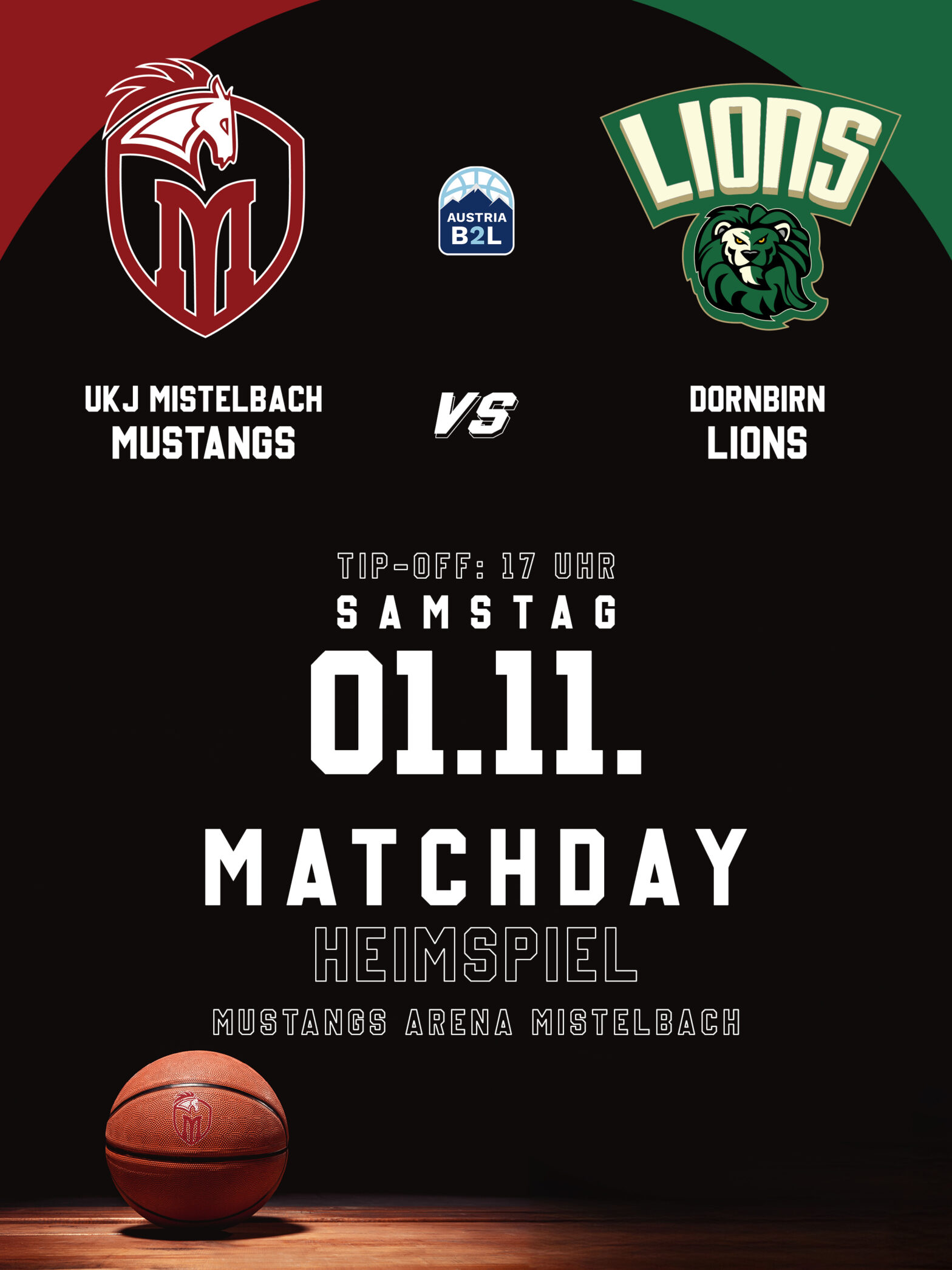 Wir sind mittlerweile in der Meisterschaftsrunde 5 angelangt. Die Mustangs sind nach wie vor ungeschlagen in dieser Saison. Beim nächsten Heimspiel gastieren die Dornbirn LIONS in Mistelbach. Das Spiel beginnt um 17:00 Uhr in der Mustangs Arena. Sämtliche Spiele der 2. Bundesliga und der Superliga werden live im Internet (BasketballAustriaAT) übertragen.